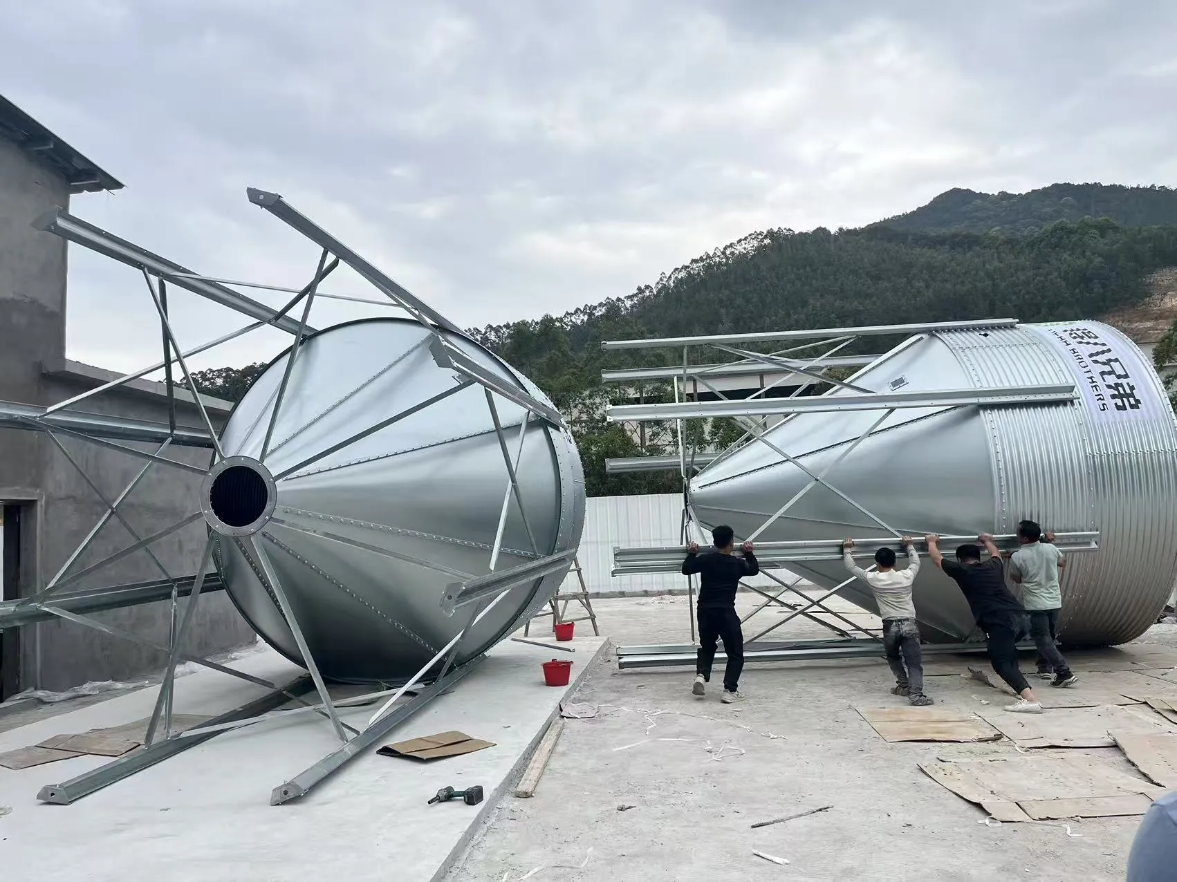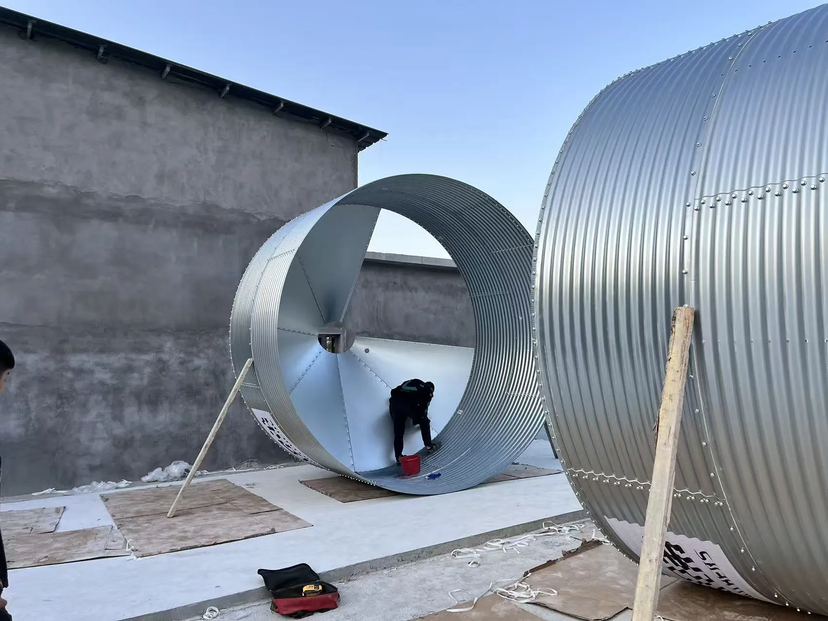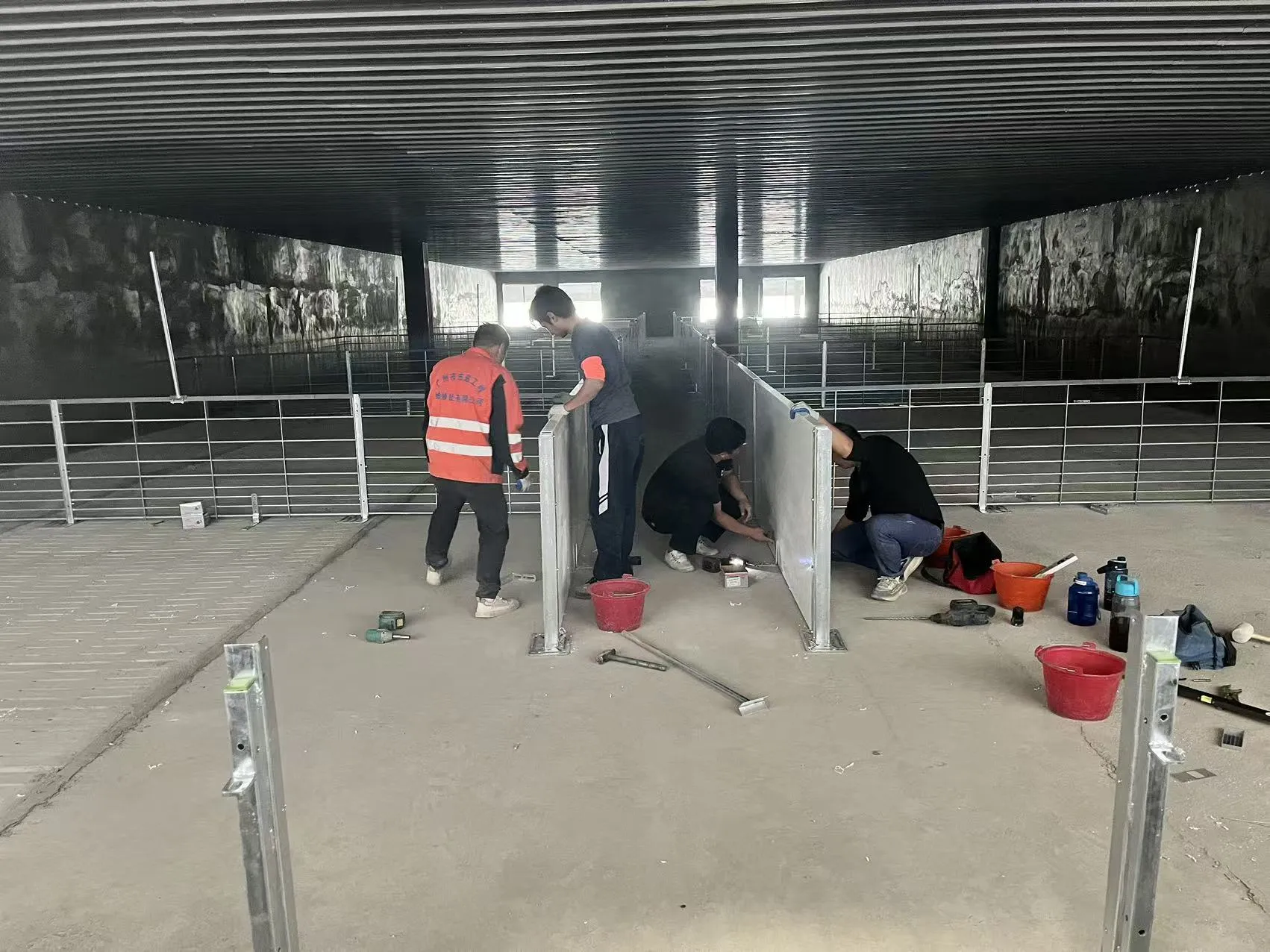 Tempoh pembinaan dijangka bertahan selama tiga bulan. Pada masa ini, pekerja sedang memasang silo suapan dan penamat kandang bangsal, dan pembinaan sedang giat dijalankan.